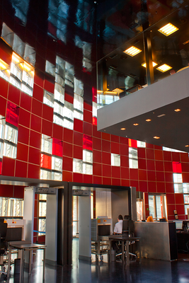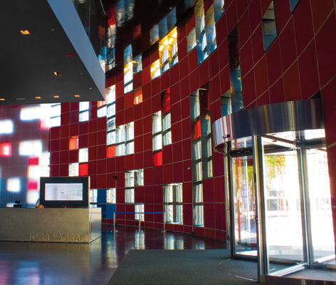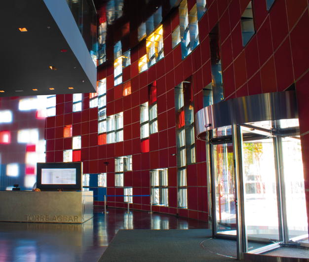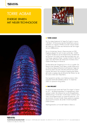 Für Vossloh-Schwabe startete das Projekt "Torre Agbar" im September 2011. Die Beleuchtungssituation im Eingangsbereich musste verbessert werden: Die Lösung konnte nur eine energieeffiziente LED-Beleuchtung in Kombination mit DALI-Treibern und einem LiCS Indoor Lichtmanagementsystem von Vossloh-Schwabe sein. In Zu-sammenarbeit mit unserem Kunden Nexia wurde eine projektspe-zifische Leuchte entwickelt, die auf dem VS LED Shop-Modul (3000 K) basiert.